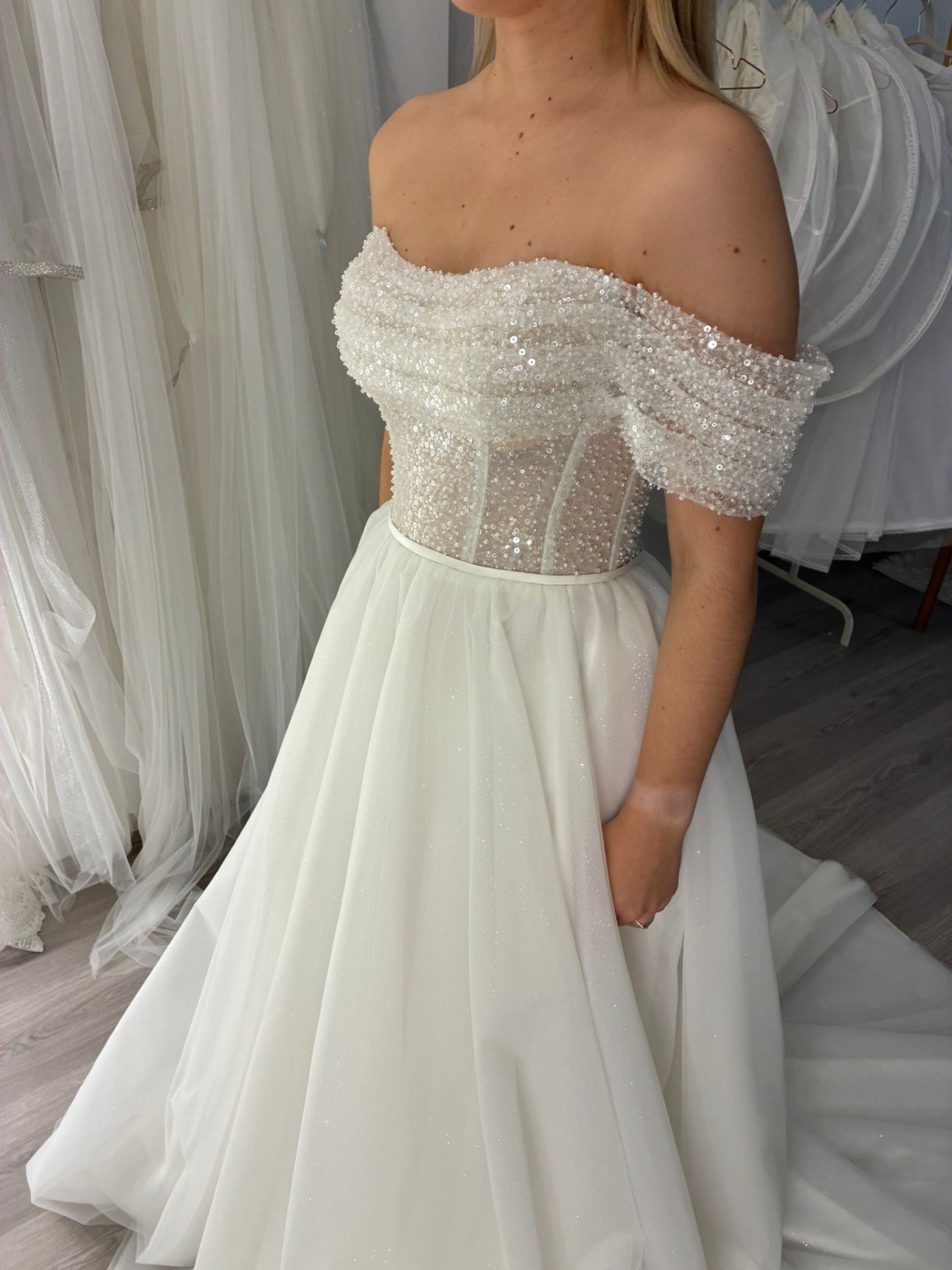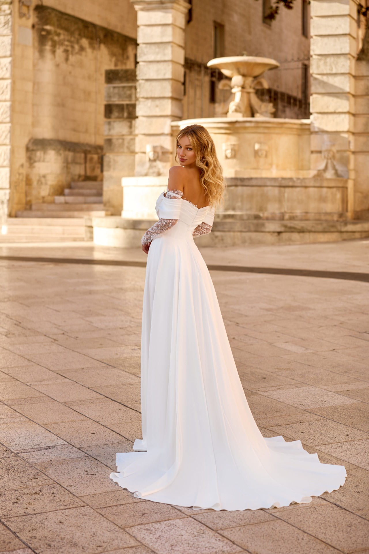 Bez objemu, bez vrstvení – jen čisté linie, které nechají vyniknout to nejdůležitější: nevěstu v její svatební den.